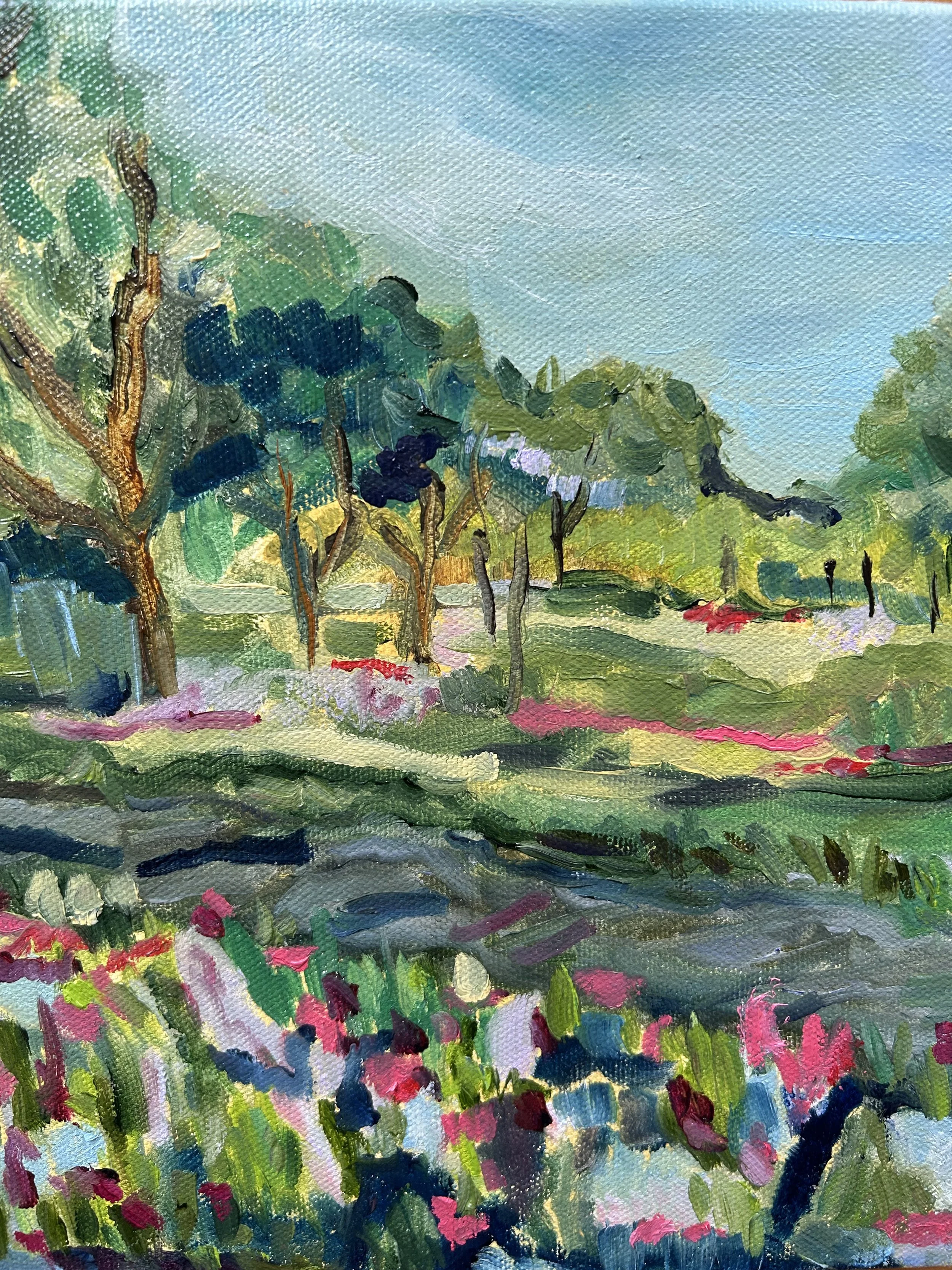 Based in Virginia, Ali's creative process is rooted in spontaneity, intuition, and a deep connection to place. From oils and acrylics to collage, she enjoys experimenting with texture and color in a loose, expressive style influenced by artists like Cézanne, Van Gogh, Jill Steenhuis, and Joan Mitchell.